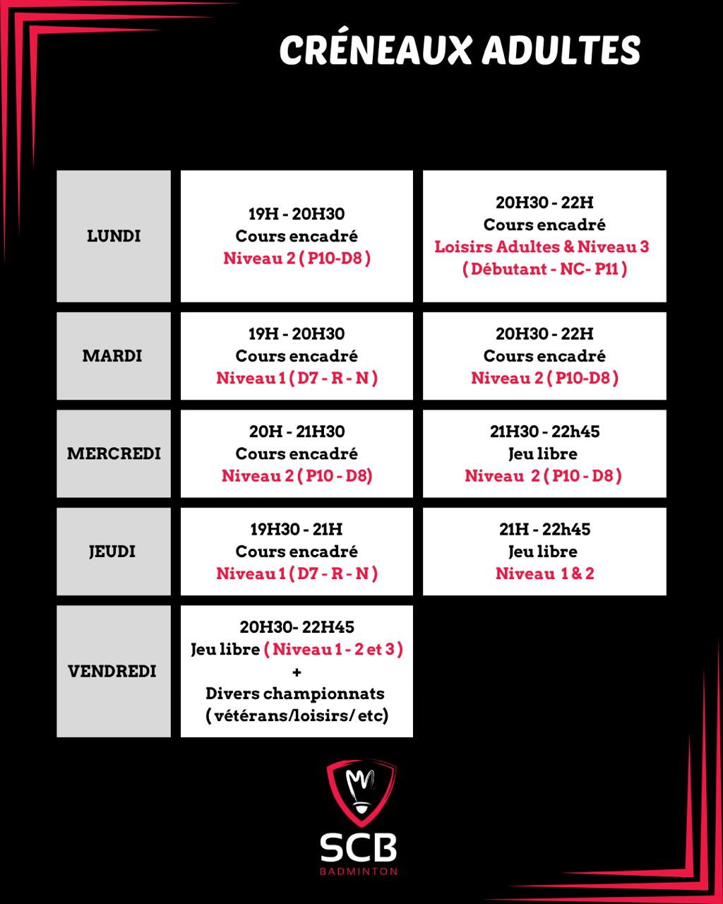 Créneaux adultes