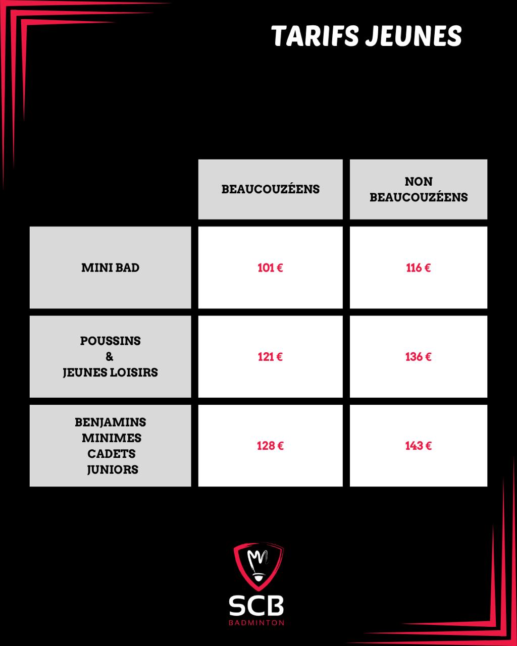 Tarifs Jeune